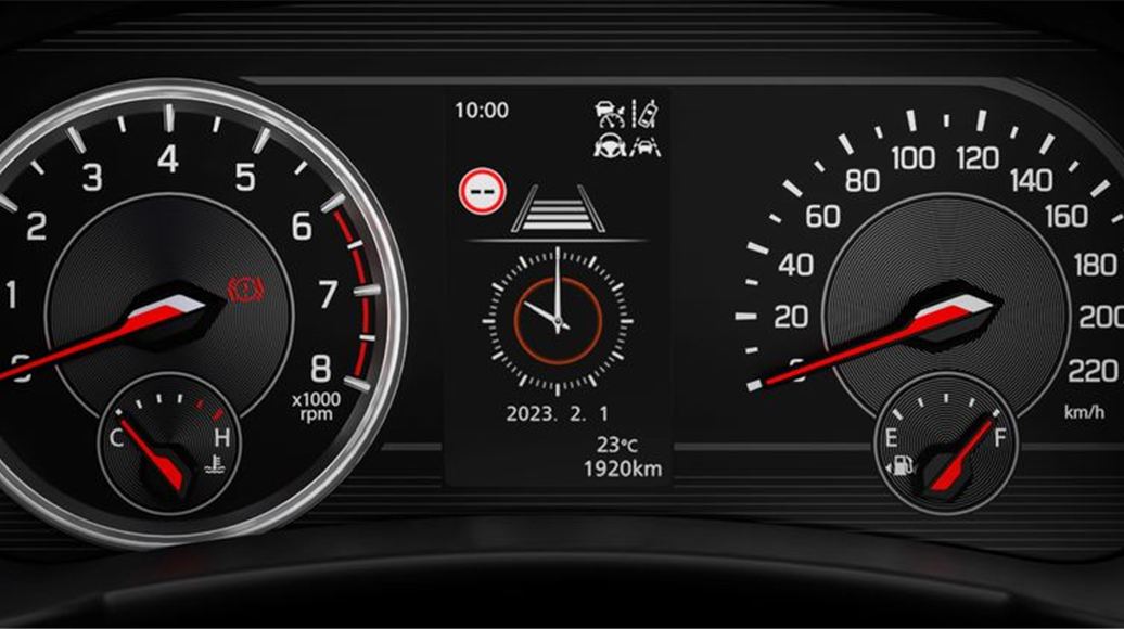 Una telecamera integrata nel cruscotto monitora gli occhi e il viso del conducente. Se il sistema rileva che il conducente è assonnato, si sta addormentando o sta distogliendo lo sguardo dalla strada, attiva un allarme sonoro e mostra un messaggio di allerta sul display informativo.