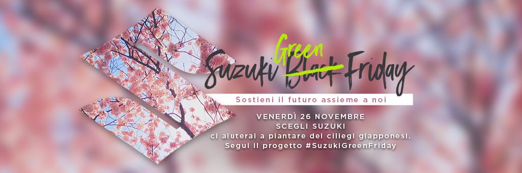 Suzuki Italia utilizzerà lo 0,5% del fatturato giornaliero ottenuto durante il "Black Friday" di venerdì 26 Novembre per donare dei ciliegi giapponesi al Comune di Torino, la splendida città che ne ospita la sede e che è gemellata con la città giapponese di Nagoya.