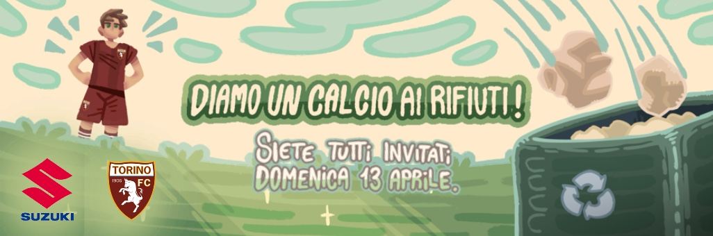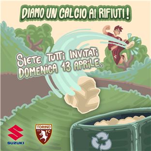 Domenica 13 aprile si svolgerà la manifestazione aperta a tutti coloro che intendano donare un po'’del proprio tempo libero all’ambiente la cittadinanza “Diamo un calcio ai rifiuti” dove, armati di pinze, guanti e sacchi, , dipendenti Suzuki, giovani calciatori del Torino FC capitanati da Corrado Buonagrazia, Responsabile delle attività di base del Torino FC, Francesco Tresso, assessore alla Cura della città e al Verde della Città di Torino, con i volontari di Fondazione Mirafiori, volontari di Torino Spazio Pubblico e cittadini volontari si ritroveranno al Parco Colonnetti di Torino, per ripulire la zona limitrofa al Bosco del Toro, nei pressi del nuovo centro sportivo Robaldo, che sarà sede degli allenamenti del Settore Giovanile del Torino FC.