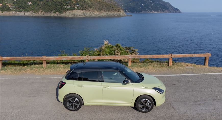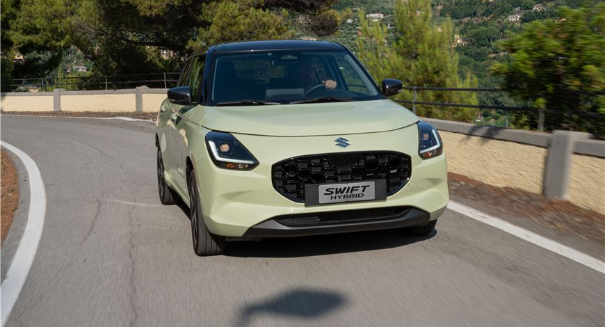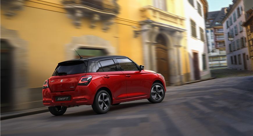 La nuova Swift Hybrid rinnova la sua identità con linee moderne e morbide che ne disegnano il profilo, fari Full LED e vetri dal disegno avvolgente con i nuovi montanti in Piano Black per un effetto tetto sospeso.